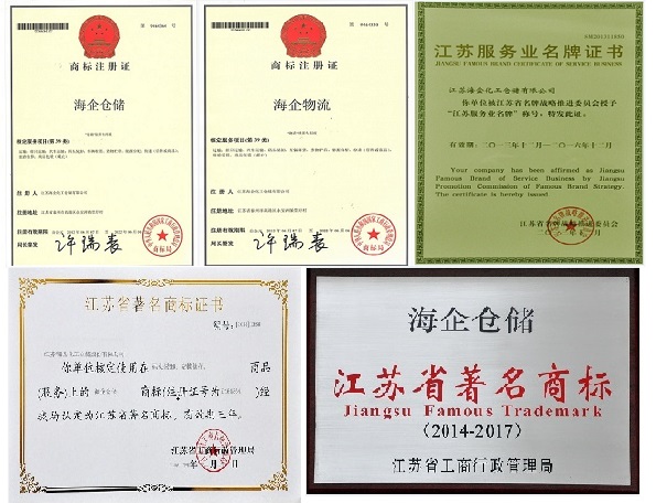 2015年5月,“海企仓储”注册商标被认定为“江苏省著名商标”;